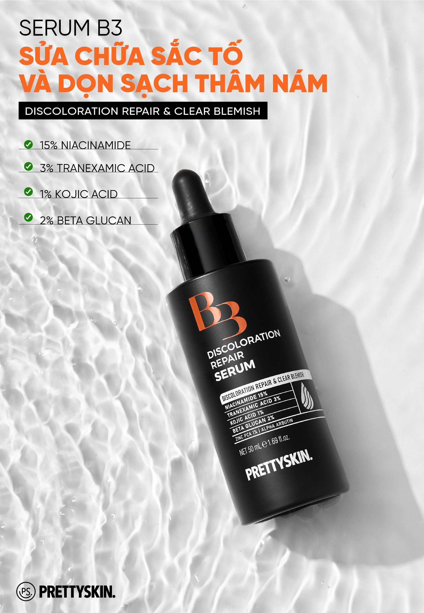 ✨Serum xóa mờ thâm nám, ngừa lão hóa, cấp ẩm và mềm da Pretty Skin B3 Discoloration Repair 50ml