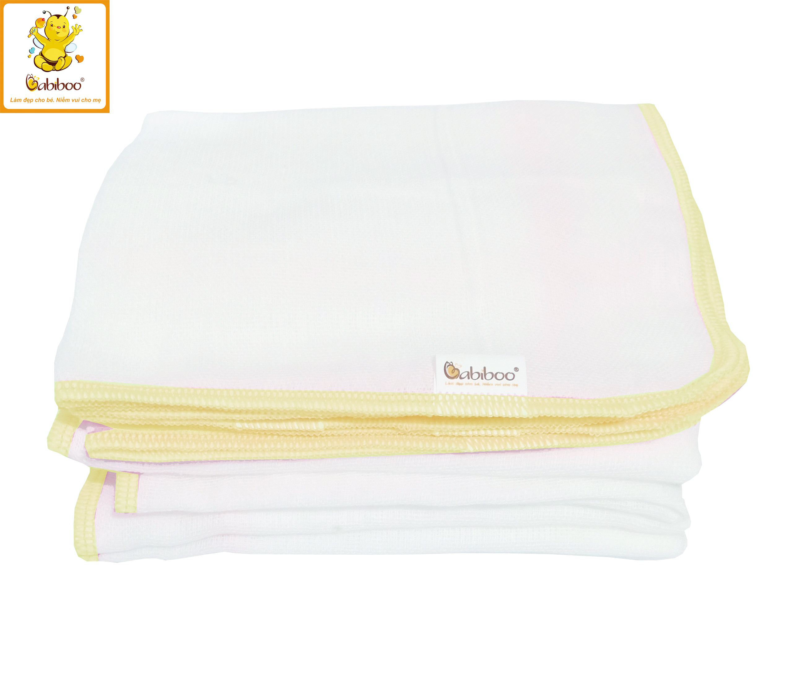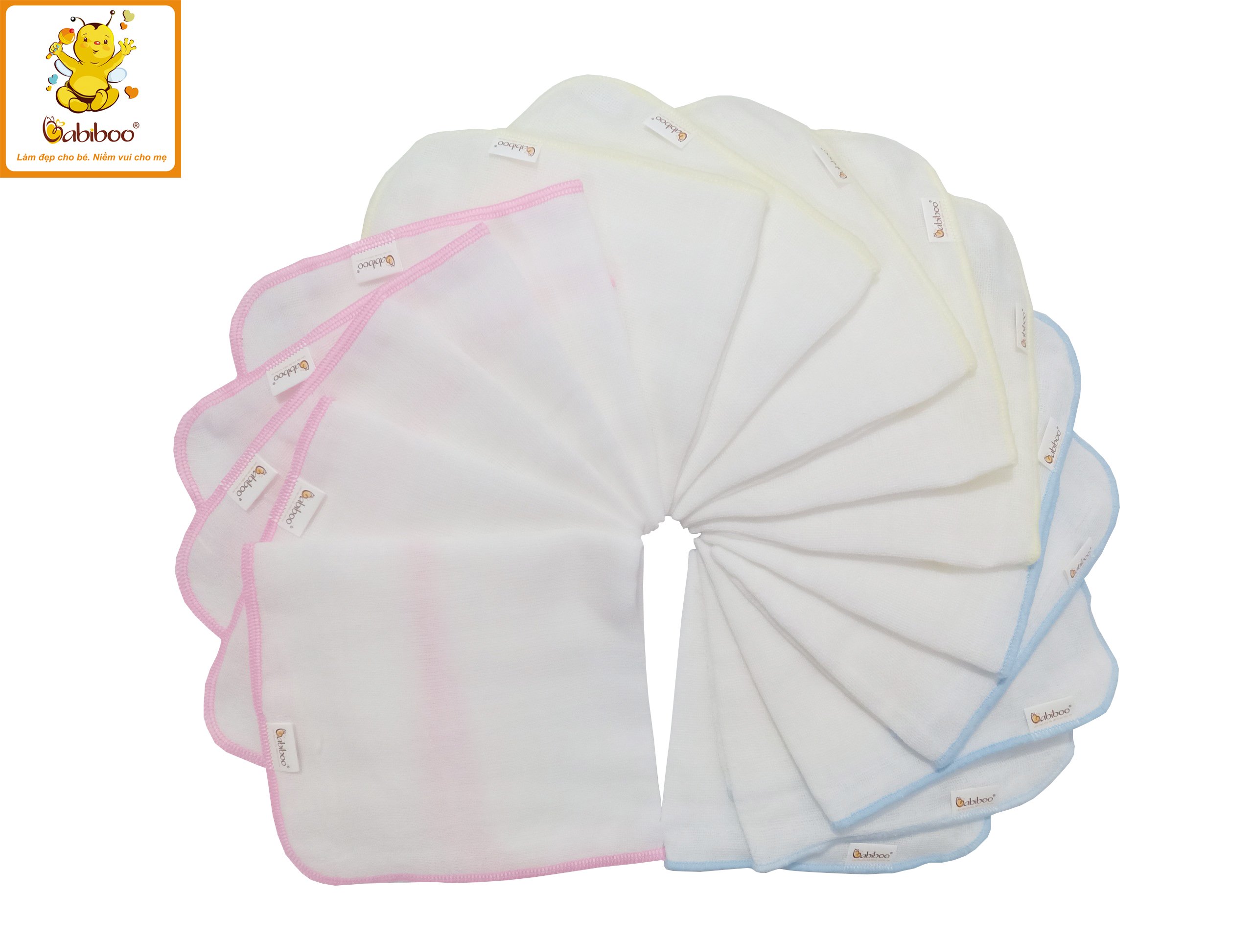 Khăn gạc G10 nhỏ cuốn biên BABIBOO - BK02 Với sản phẩm này, mẹ có thể dùng để thấm sữa, rửa mặt, lau miệng, tắm rửa, vệ sinh cho trẻ sơ sinh hay quàng cổ