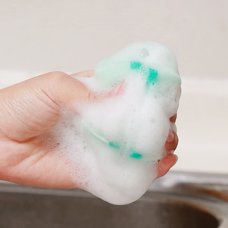Miếng rửa chén bát tạo bọt, kháng khuẩn, nhanh thoát nước 3 lớp, 2 màu tươi sáng – kích cỡ 11,8 x 5,9 x 3,2 cm (Made in Japan) Xuất xứ: Nhật Bản/ Made in