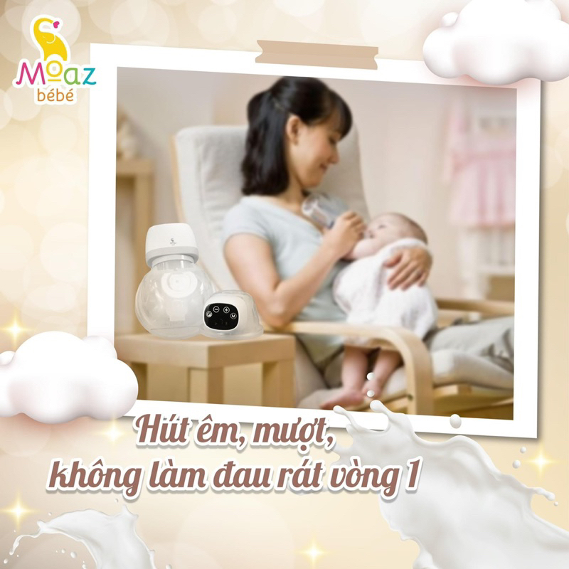 Thông tin máy hút sữa rảnh tay Moaz MB – 061Máy hút sữa rảnh tay với 3 chức năng massage, hút sữa và hỗn hợp kết hợp với 9 cấp độ từ nhẹ đến mạnh giúp mẹ hút sữa thảnh thơi không lo đau rát. Thiết k...