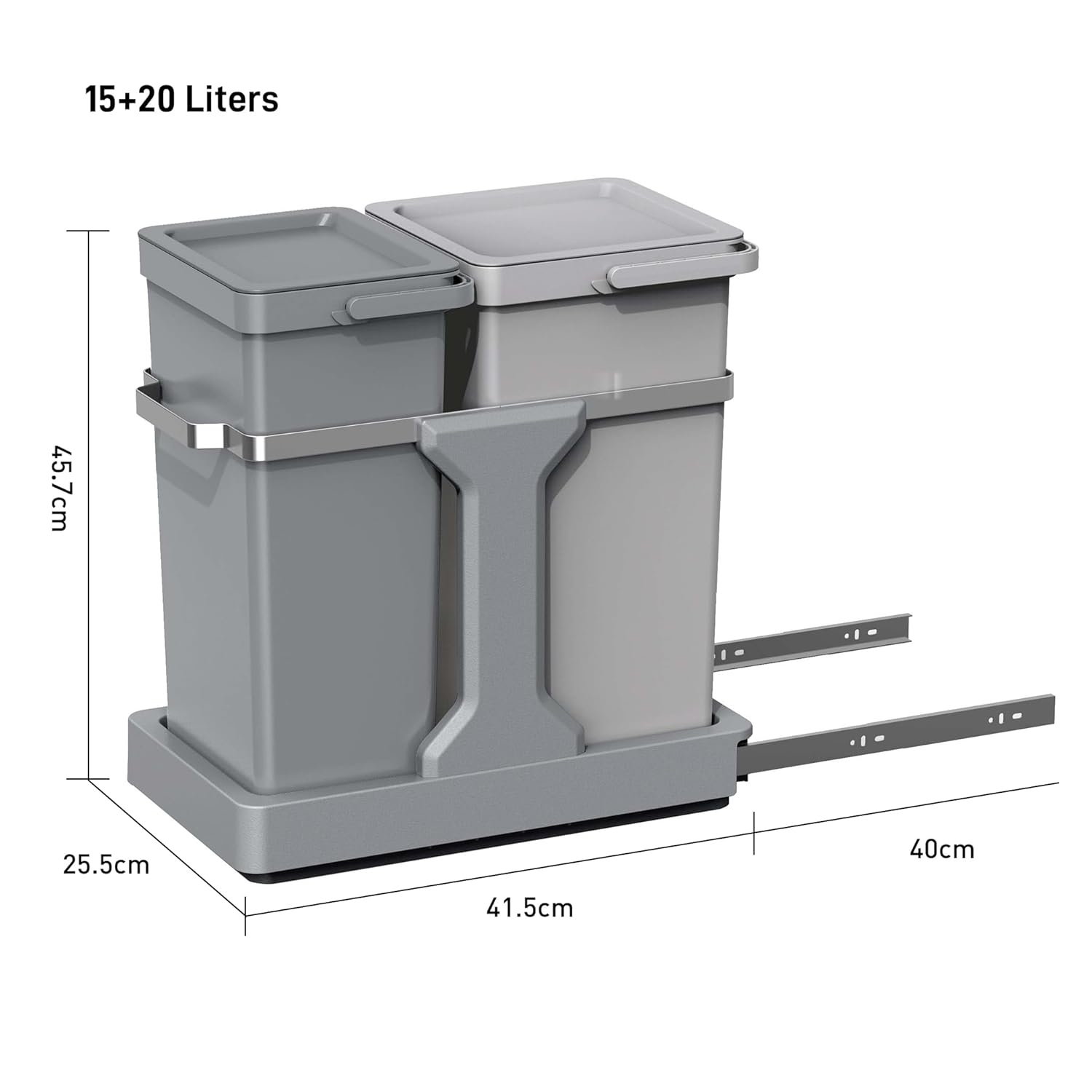 - Tự hào là thương hiệu thùng rác được xuất khẩu sang Châu Âu & Mỹ, nơi mà chất lượng luôn đặt lên hàng đầu. Gam màu ghi luôn được yêu thích nhờ khả năng chống bám vân tay và giữ bề mặt sạch đẹp mỗi ngày. Tối đa hóa không gian, giấu gọn sau cánh tủ Với thiết kế thông minh dạng kéo trượt, Deco Duo được lắp âm vào bên trong hộc tủ bếp, giúp không gian bếp luôn gọn gàng, sạch sẽ và sang trọng. Chỉ cần kéo nhẹ, cả hai ngăn thùng rác sẽ trượt ra ngay trước mặt — cực tiện lợi khi sơ chế thực phẩm, dọn bếp. Tách biệt rác thải & tái chế ngay từ đầu Hệ thống 2 ngăn cho phép phân loại rác hữu cơ, rác tái chế dễ dàng, góp phần xây dựng thói quen sống xanh mỗi ngày. Dễ dàng sử dụng & vệ sinh: Nắp có thể tháo rời nhanh chóng để thay túi rác. Khung giữ túi thông minh giữ túi gọn gàng, không bị tụt vào bên trong. Hai thùng nhựa riêng biệt, có tay cầm tiện lợi khi cần mang ra đổ và vệ sinh. Đóng mở mượt mà, vận hành nhẹ nhàng Hệ ray trượt chắc chắn giúp kéo ra - đẩy vào nhẹ nhàng dù đầy tải, không gây tiếng ồn, không xộc xệch, đảm bảo độ bền lâu dài. Lắp vừa mọi tủ bếp tiêu chuẩn Không cần khoan cắt phức tạp — chỉ cần lắp đúng chuẩn kích thước, Deco Duo đã sẵn sàng đồng bộ với thiết kế nội thất bếp nhà bạn. Giải pháp hiện đại giúp căn bếp luôn sạch đẹp, thoáng đãng, tiện nghi mà vẫn giữ được sự gọn gàng tinh tế. Thông số kỹ thuật: