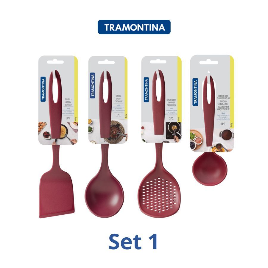 Set 4 Dụng Cụ Nấu Ăn Muôi Vá Xẻng Tramontina Bằng Nhựa PA An Toàn Cho Sức Khỏe Chịu Nhiệt Nhập Khẩu Brazil