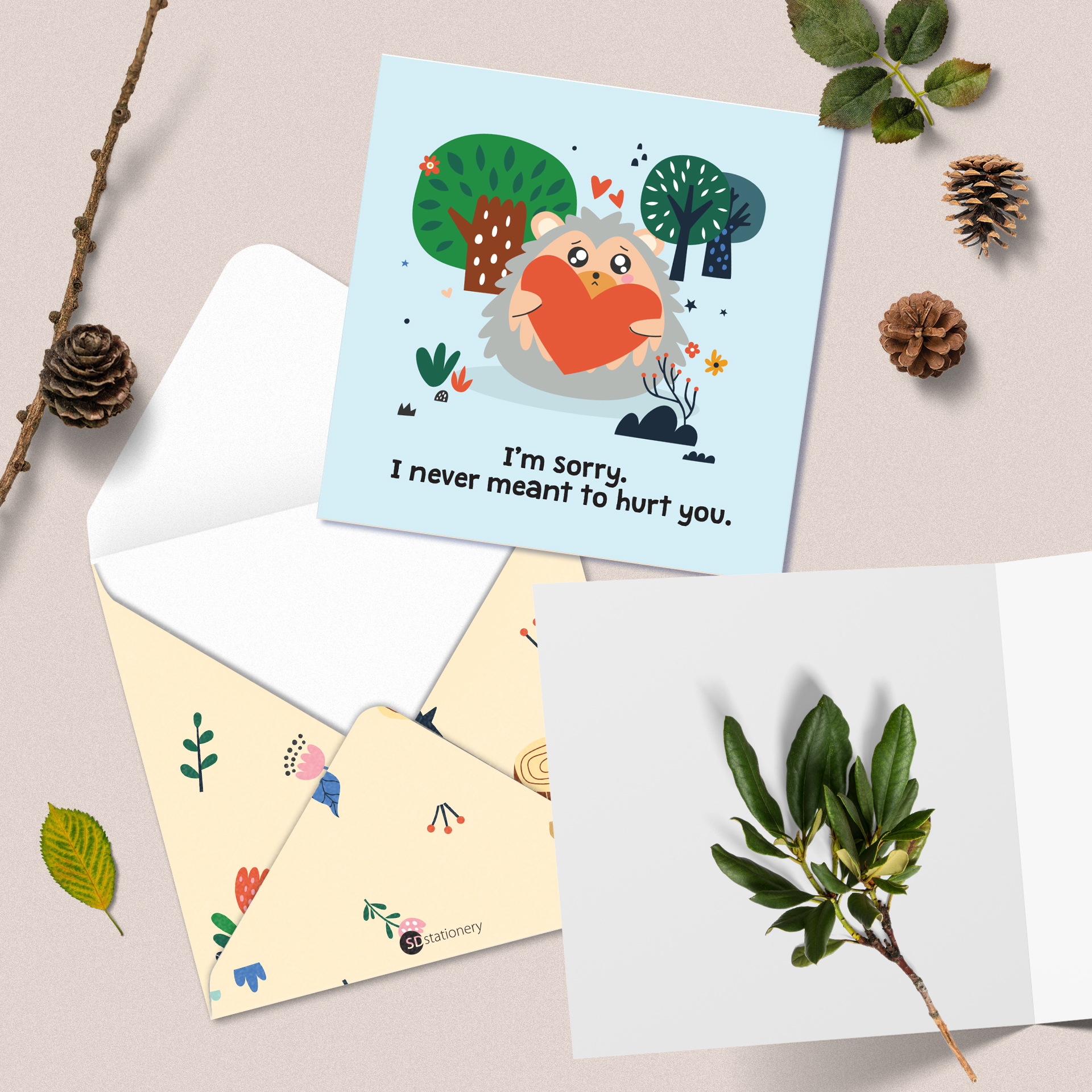 ✨Set 5 thiệp cảm ơn, xin lỗi, chúc mừng, động viên SDstationery Forest minh họa con vật dễ thương, thông điệp ý nghĩa 12x12cm