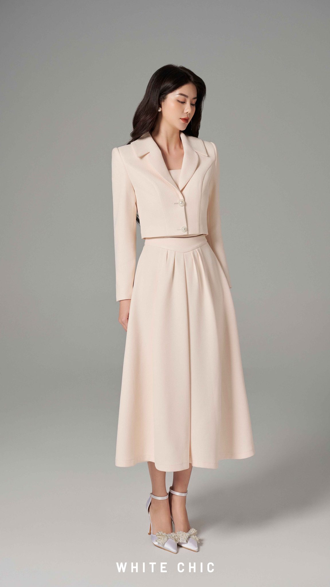 ✨Set áo blazer & chân váy xòe Euphoria thiết kế cao cấp WHITE CHIC