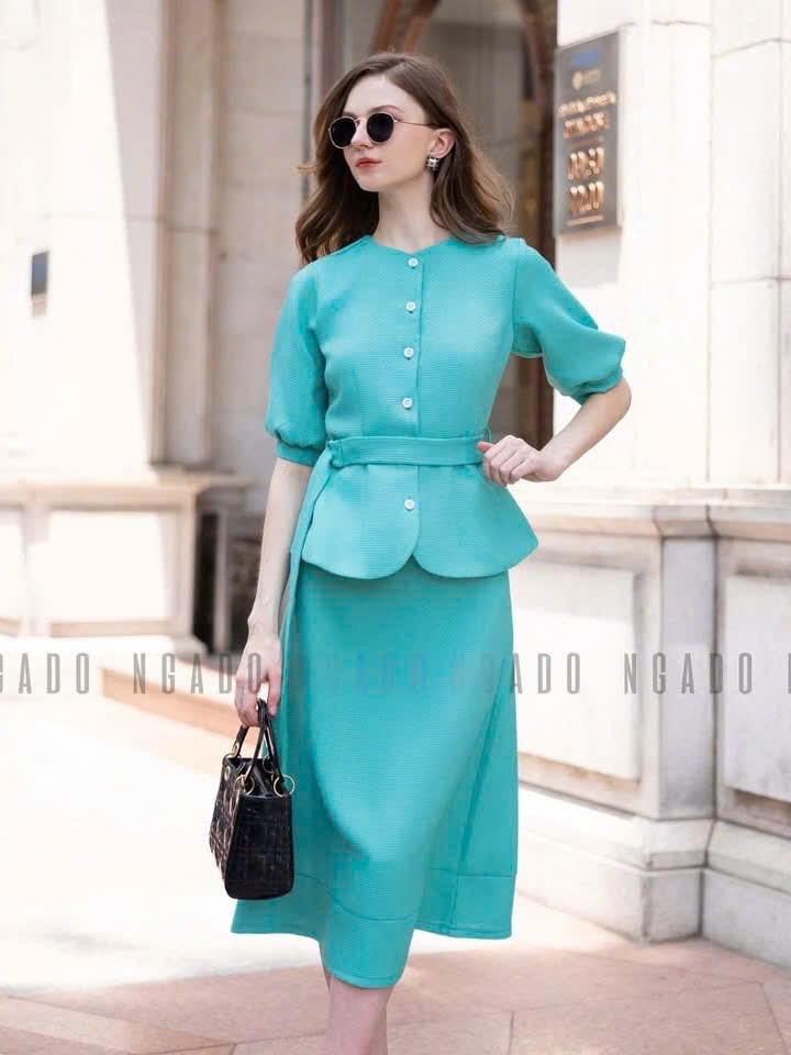 ✨Set áo váy xanh ngọc tay lửng NGADO , set áo váy dài , set công sở, dự tiệc
