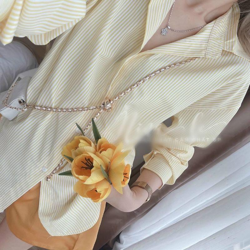 Set đồ đi chơi bigsize nữ áo sơ mi kẻ sọc tay dài kèm quần đùi ống rộng lưng thun chất lụa chéo mềm