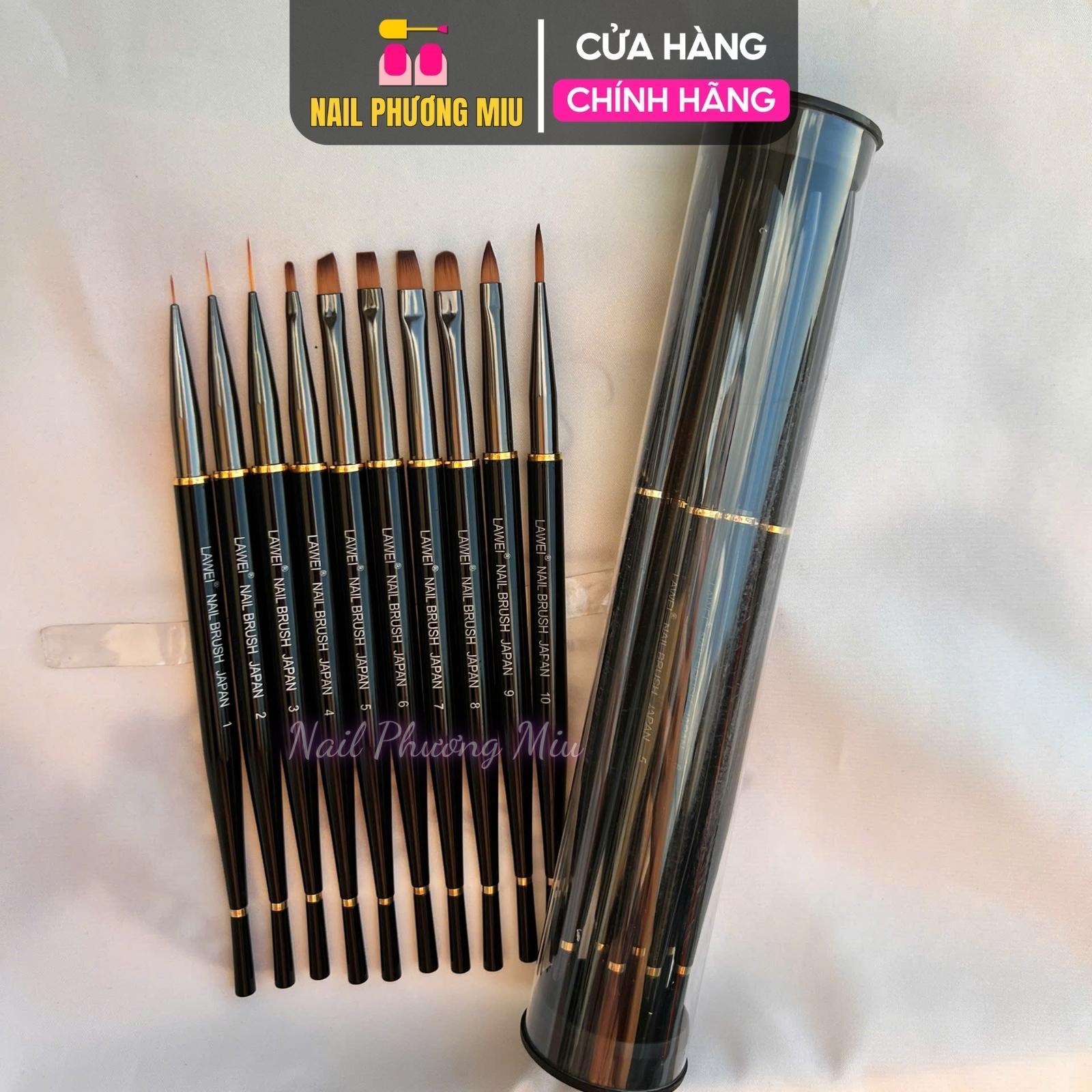 ✨Set Cọ Nhật Vẽ Móng Lawei, Bộ 10 Cây Cọ Làm Nail Cao Cấp, Sợi Tổng Hợp, Từ 12.5cm Đến 19cm, Dành Cho Thợ Làm Nail