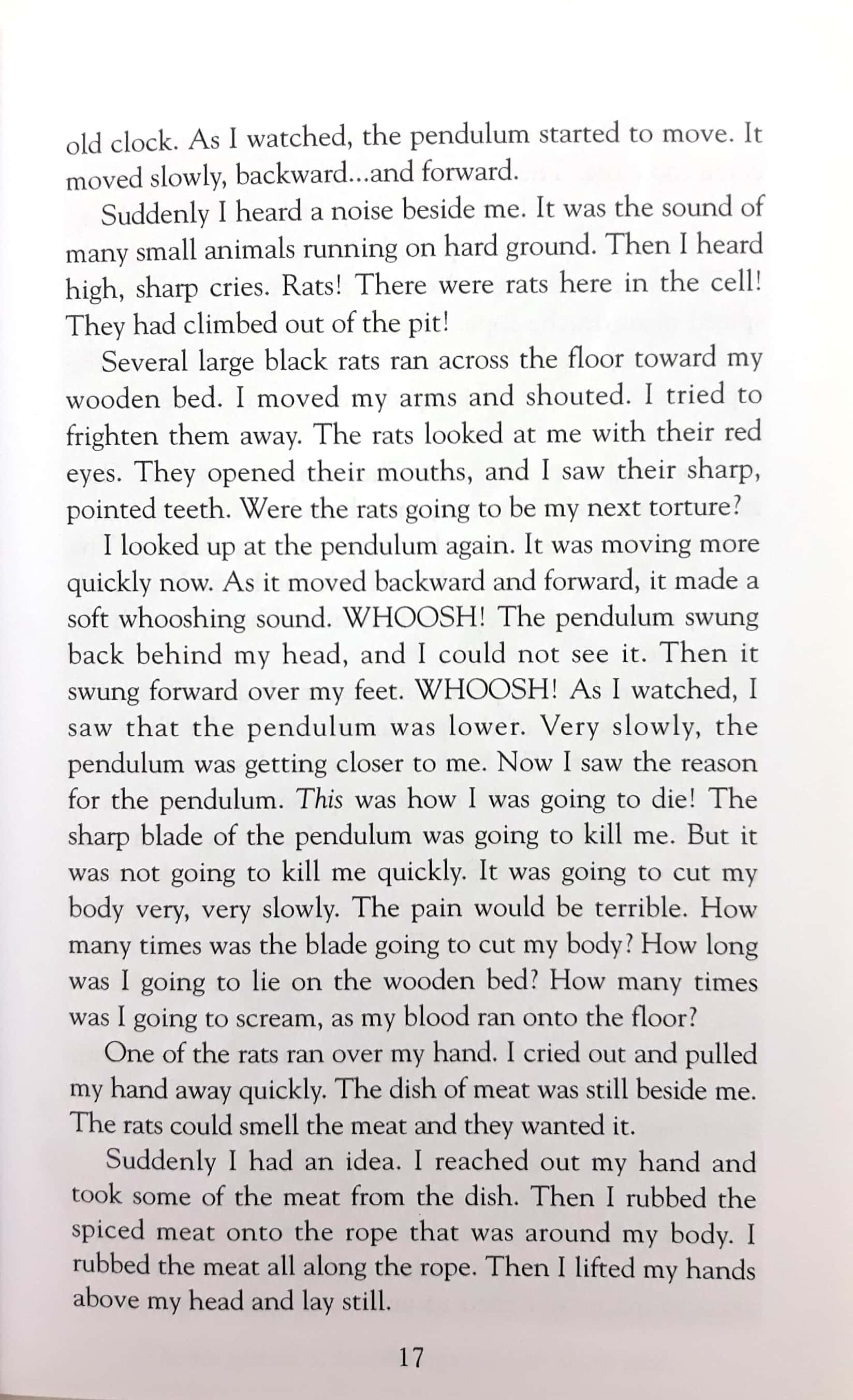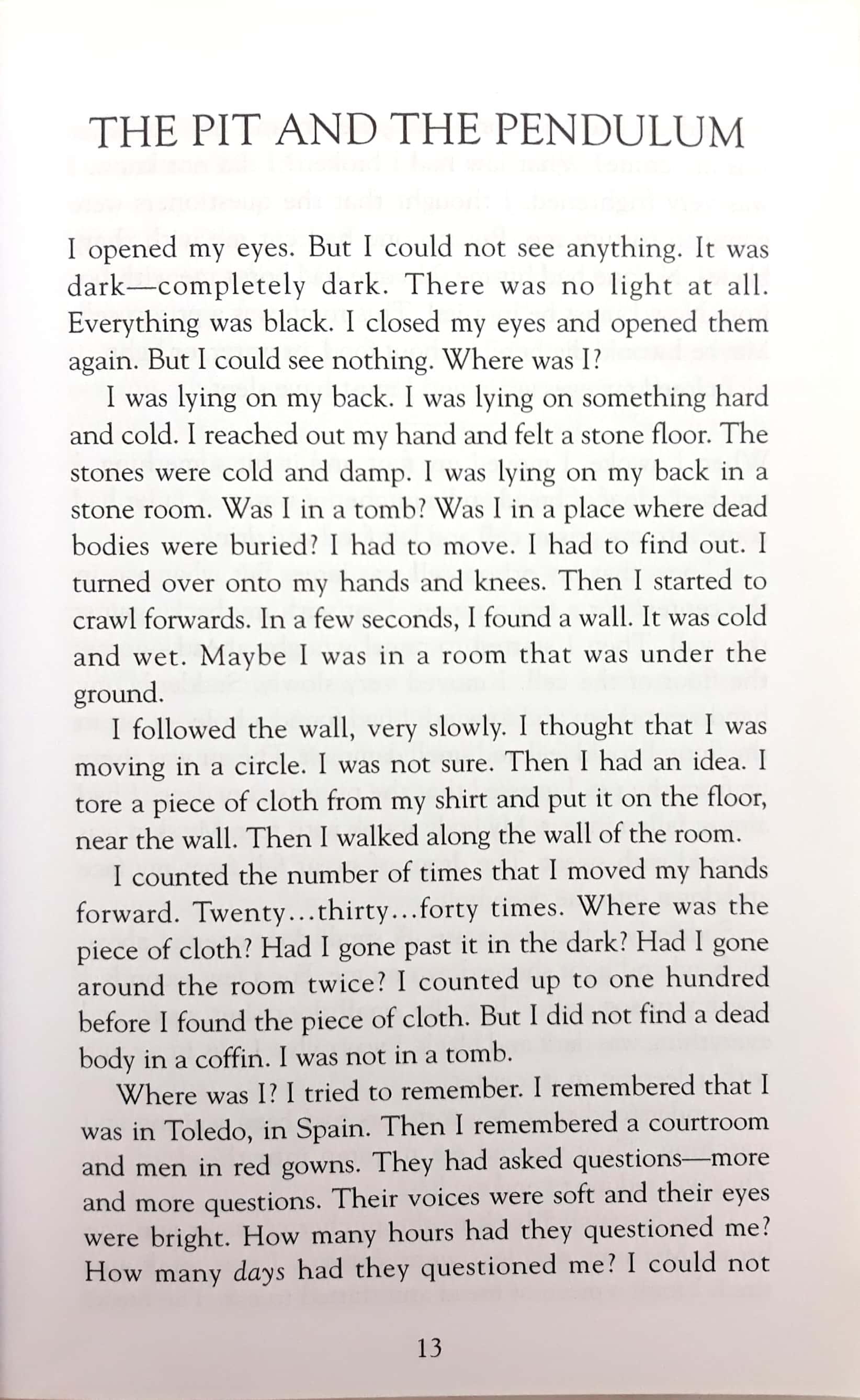 THE PIT AND THE PENDULUM A prisoner wakes up to find himself in a dark cell with a deep pit.