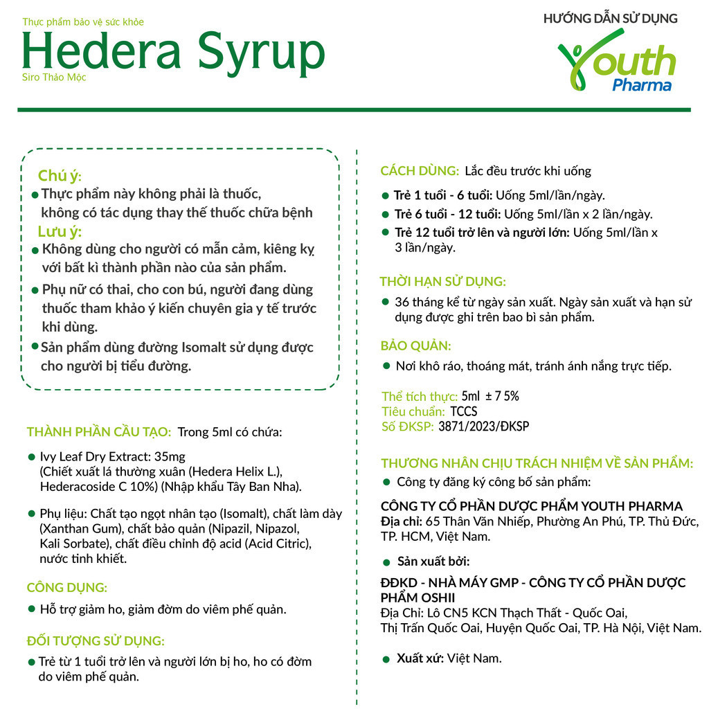 ✨Siro Hedera Syrup Youth Pharma hỗ trợ giảm ho, giảm đờm - Gói 5ml
