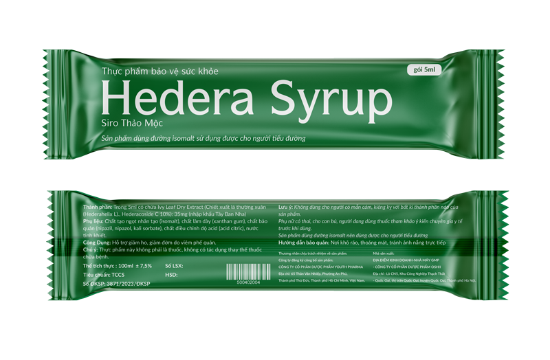 Siro Hedera Syrup Youth Pharma hỗ trợ giảm ho, giảm đờm - Gói 5mlSiro Hedera Syrup Youth Pharma hỗ trợ giảm ho, giảm đờm - Gói 5mlSiro Hedera Syrup Youth Pharma hỗ trợ giảm ho, giảm đờm - Gói 5mlSiro Hedera Syrup Youth Pharma hỗ trợ giảm ho, giảm đờm - Gói 5ml
