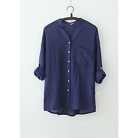 Áo sơ mi nữ khoác dài tay màu trơn hai túi phôm rộng