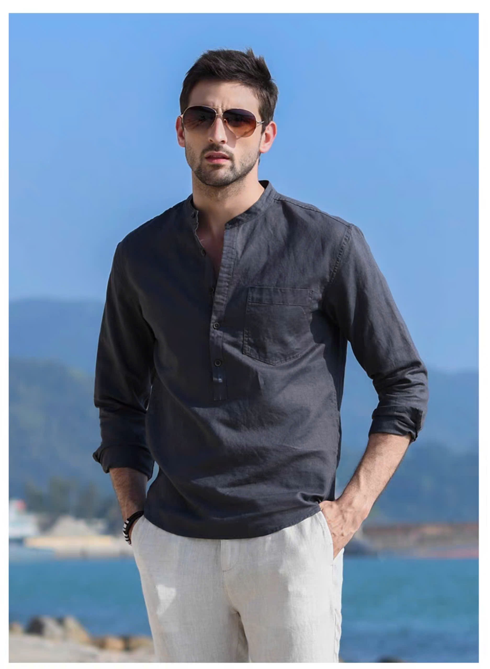 ✨Sơ mi nam trẻ trung thanh lịch, sơ mi cổ trụ thời trang trẻ 2024 basic