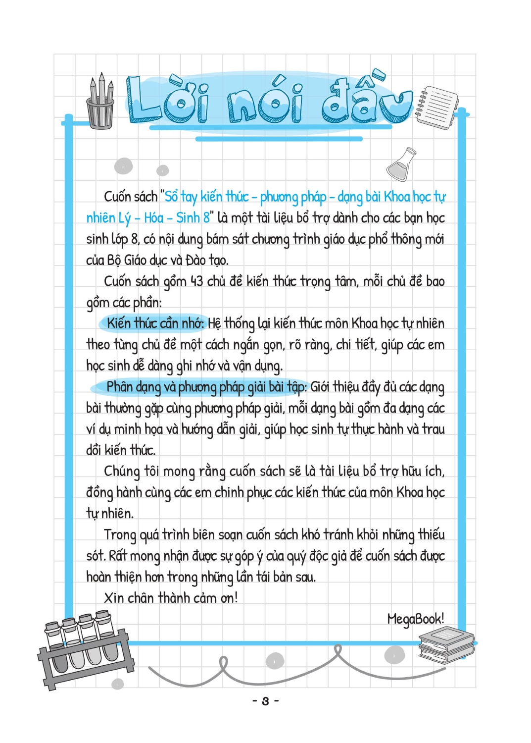 ✨Sổ Tay Kiến Thức - Phương Pháp - Dạng Bài Khoa Học Tự Nhiên Lý - Hóa - Sinh 8 - MEGA