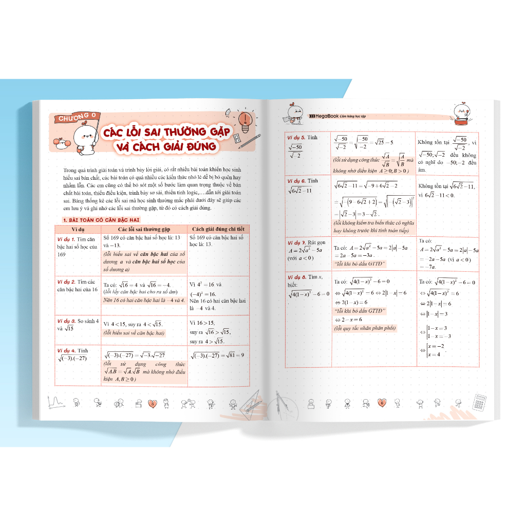 Sổ tay dành riêng một chương để thống kê các lỗi sai thường gặp khi giải toán. Đây là các lỗi sai của học sinh được tổng hợp từ các thầy cô nhiều năm kinh nghiệm trong việc giảng dạy, chấm thi kỳ thi vào 10. Điều này giúp bạn nhận ra những sai lầm thường mắc phải và tránh lặp lại chúng. Chương này cũng cung cấp cách giải đúng cho từng lỗi, giúp bạn hiểu rõ và sửa chữa những sai sót của mình.