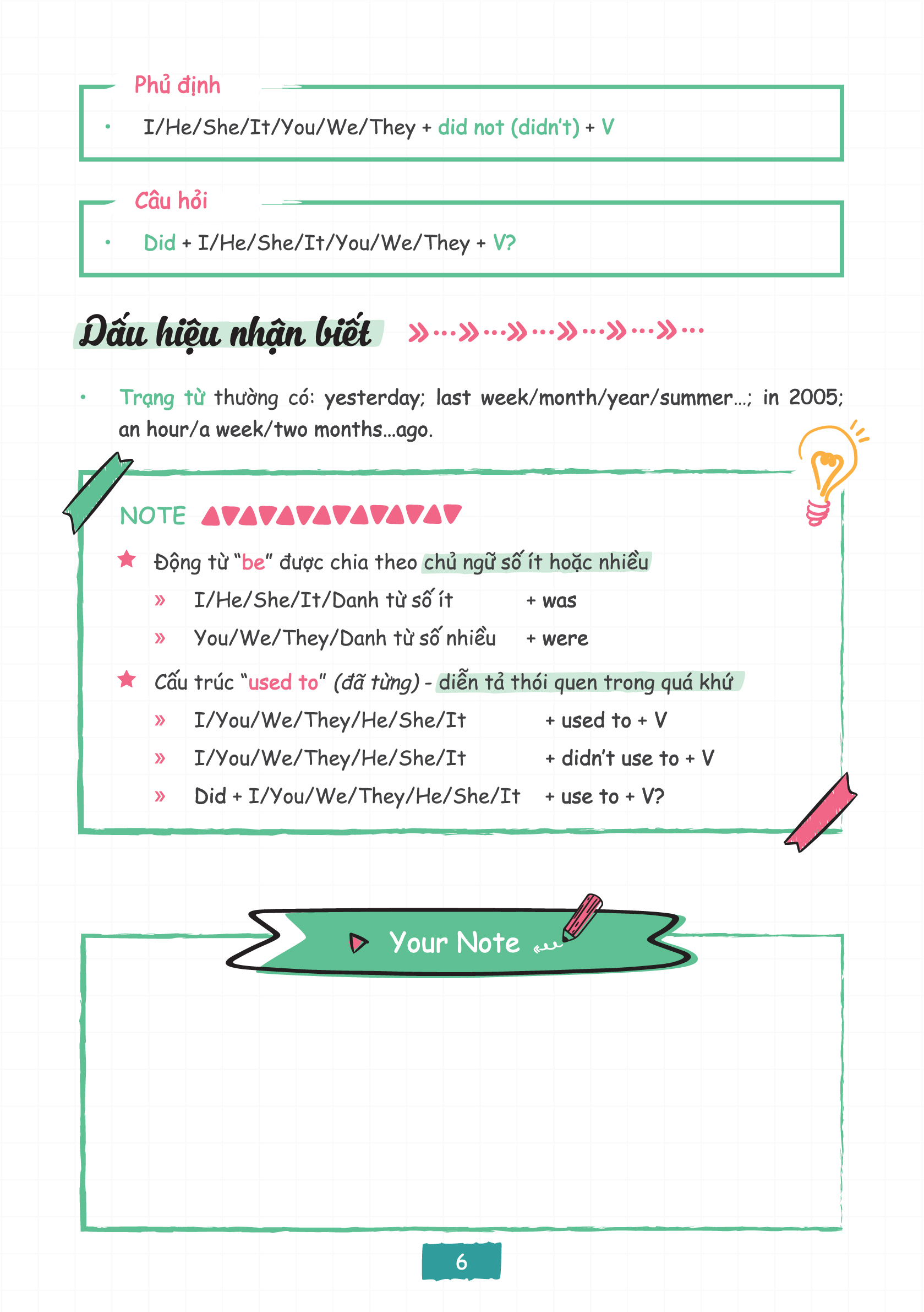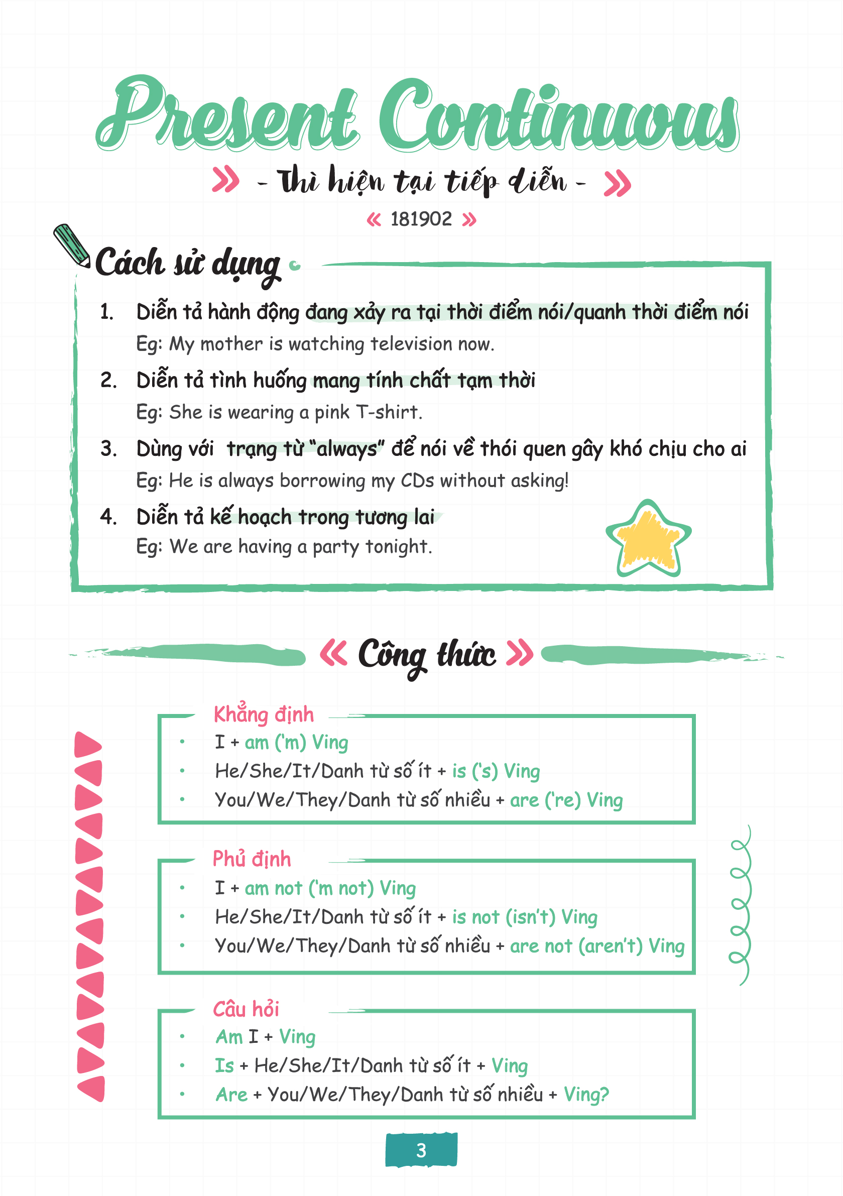 • Cuốn sổ tay được trình bày theo từng mục ngữ pháp, sử dụng các màu sắc và hình ảnh xinh xắn giúp các bạn phân biệt, tra cứu và ghi nhớ công thức dễ dàng hơn.