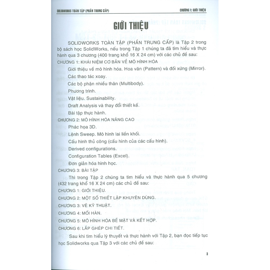 Nội dung 3 tập đầu được trình bày giới thiệu những vấn đề cơ bản nhất mà Solidworks có thể làm được. Có thể xem bộ sách này là tài liệu hướng dẫn đầy đủ về Solidworks phiên bản 2021 - 2022