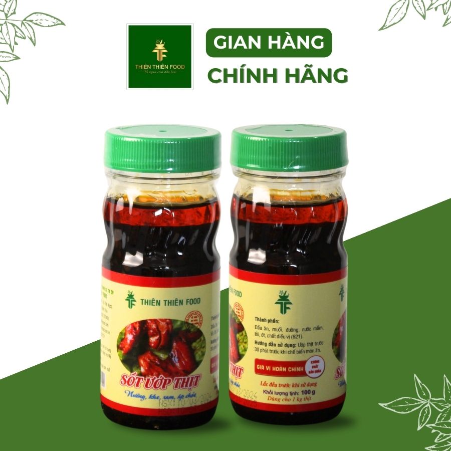 Mua tại TiktokSỐT ƯỚP THỊT THIÊN THIÊN : là dòng sản phẩm sốt ước có đặc tính nổi trội là các nguyên liệu được nấu chín trước khi đóng chai nên bảo quản được lâu mà k càn dùng chất bảo quản. SỐT ƯỚP có thể dùng trong ướp nướng,áp chảo,chiên ,kho dùng với nhiều loại thực phẩm như các loại thịt,cá,tôm 100g sốt ướp ướp được từ 1kg2 đến 1kg5 thịt , tùy vào khẩu vị gia đình bạn Gia vị Thiên Thiên Food luôn chú trọng các tiêu chíất lượng, an tòan vệ sinh thực phẩm , giá thành hợp lý Hạn sử dụng sản phẩm 1 năm tính từ ngày sản xuất