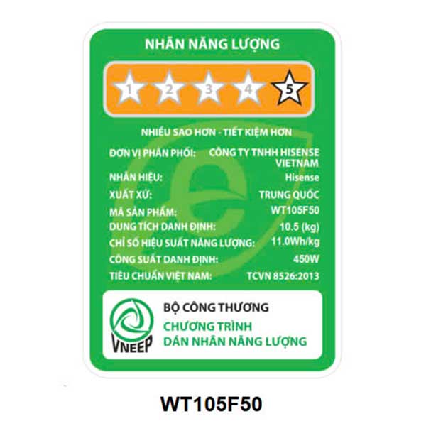 Mua tại TiktokMáy giặt Hisense Inverter 10.5kg WT105F50 là lựa chọn lý tưởng cho gia đình 4-6 thành viên. Máy giặt Hisense sở hữu công nghệ Kích Hoạt Phân Tử Nước Plus cùng giặt AI thông minh giúp đánh bay vết bẩn cứng đầu và bảo vệ từng sợi vải, đặc biệt nổi bật với tính năng làm mềm vải, không ố vàng, giữ quần áo luôn sạch sẽ và bền đẹp. *Thông số kỹ thuật Máy giặt Hisense Inverter 10.5kg WT105F50