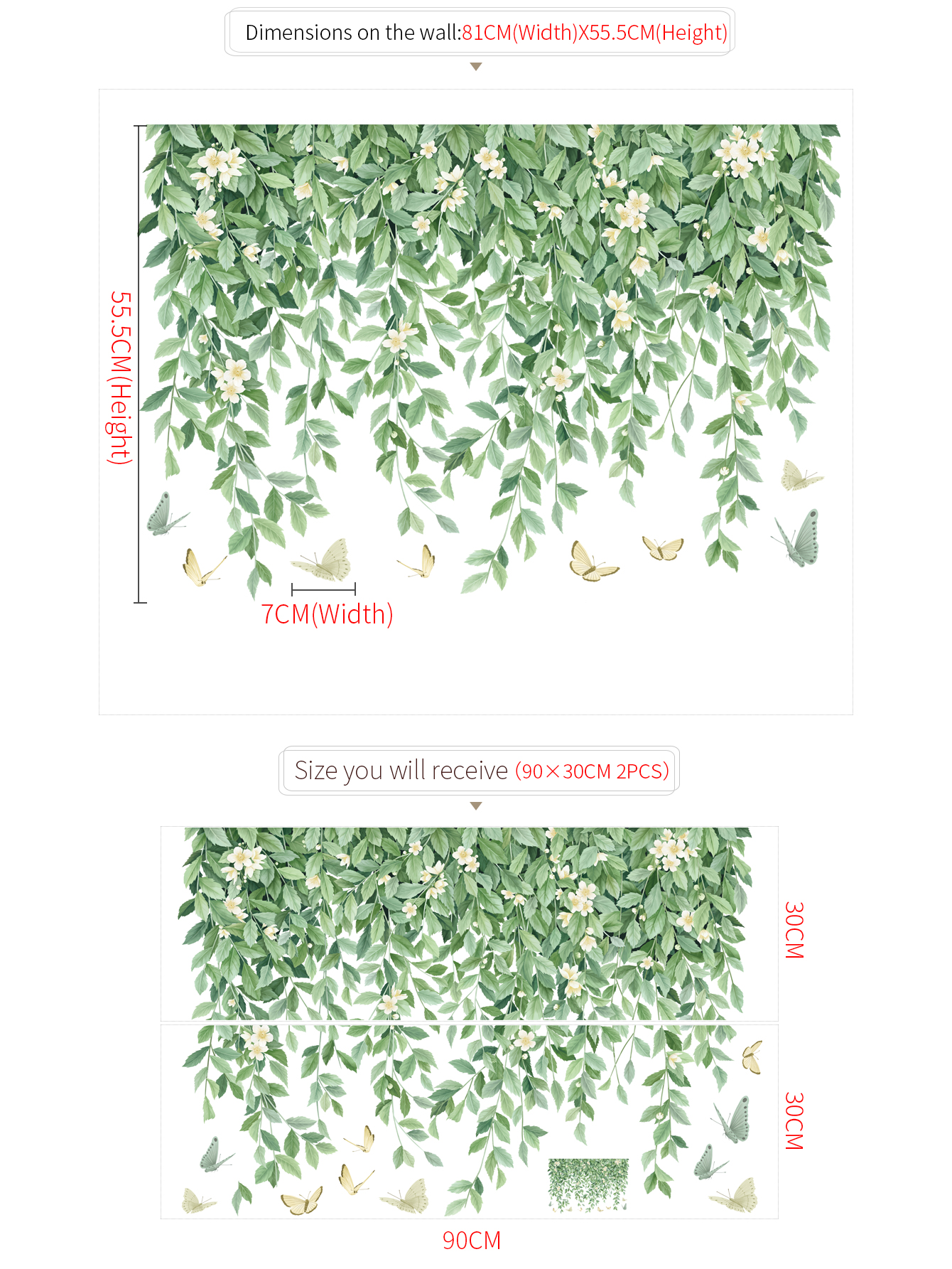 ✨Sticker Giấy Dán Tường Decal Dán tường Tranh Dán Tường Trang Trí Tường Mẫu Hoa Lá Phong Cách Vintage ZDB-2579