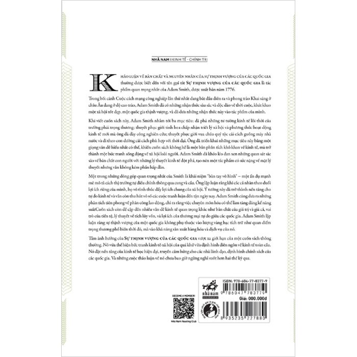 Sự Thịnh Vượng Của Các Quốc Gia (Bìa Cứng) “Sự thịnh vượng của các quốc gia” của Adam Smith là một trong những tác phẩm quan trọng nhất trong kinh tế học, đặt nền móng cho kinh tế