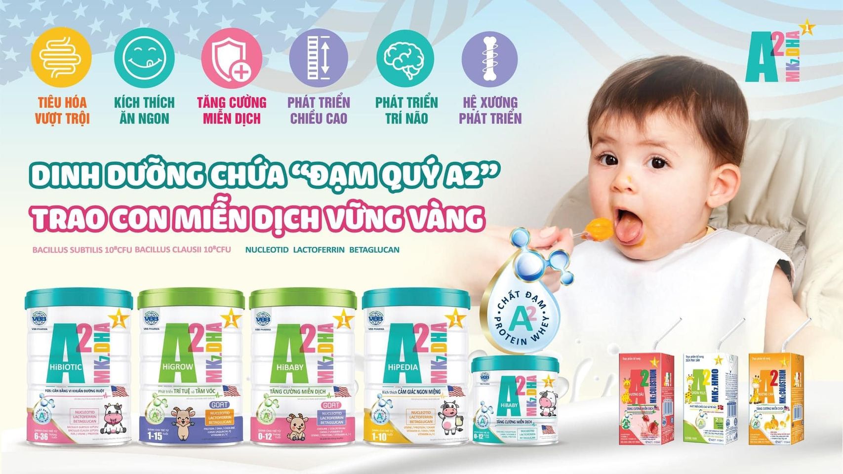 Sữa A2 Mk7.DHA HiPedia - Công Thức Cải Tiến Ngôi Sao Số 1 mang đến giải pháp tăng cân khoa học và hoàn hảo với nguồn dinh dưỡng cân đối, đậm độ linh hoạt đảm bảo cung cấp vừa đủ lượng Kcal trong ngày và ứng dụng ĐẠM QUÝ cực kì thân thiện với đường ruột. Với trẻ biếng ăn, hấp thu kém, việc bổ sung đạm quý lại càng cần thiết để giúp con bắt kịp đà tăng trưởng, khỏe mạnh hơn.