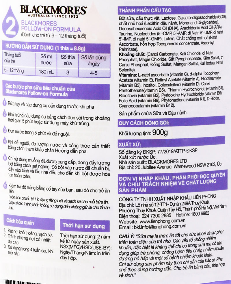 - Hỗ trợ hệ vi sinh vật đường ruột khỏe mạnh Ưu điểm của "Sữa bột công thức Blackmores Follow-on Stage 2" Được hỗ trợ bởi 100 năm kinh nghiệm trong các sản phẩm sức khỏe tự nhiên và tư vấn cho con bú trong nhà của chúng tôi, Blackmores đã làm việc để tạo ra một công thức độc đáo lấy cảm hứng từ tính chất mẹ - mẹ tốt nhất. Blackmores Formula Formula chứa tất cả các vitamin và khoáng chất cần thiết để hỗ trợ nhu cầu dinh dưỡng của bé. Công thức đặc biệt dành cho trẻ sơ sinh bởi thương hiệu sức khỏe tự nhiên hàng đầu của Úc để đáp ứng nhu cầu dinh dưỡng cho trẻ sơ sinh