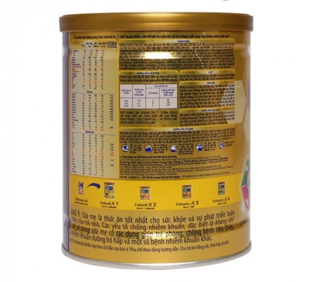 - VITAMIN & KHOÁNG CHẤT hỗ trợ miễn dịch, tăng sức đề kháng. Hỗ trợ phát triển thể chất toàn diện. Đối tượng sử dụng Dành cho bé từ 0 - 6 tháng tuổi Thành phần Trong sữa Enfamil A+ số 1 có chứa: Đường Lactose (sữa bò), hỗn hợp dầu thực vật, sữa bột tách béo, hỗn hợp đạm Whey tinh chất (sữa bò) - nguồn của MFGM, dầu đơn bào, axit Arachidonic (ARA), Axít Docosahexaenoic (DHA), MFGM Pro, Colin, Chất xơ (Prebiotic), Vitamin và khoáng chất,... Hướng dẫn cách pha và dùng sữa: