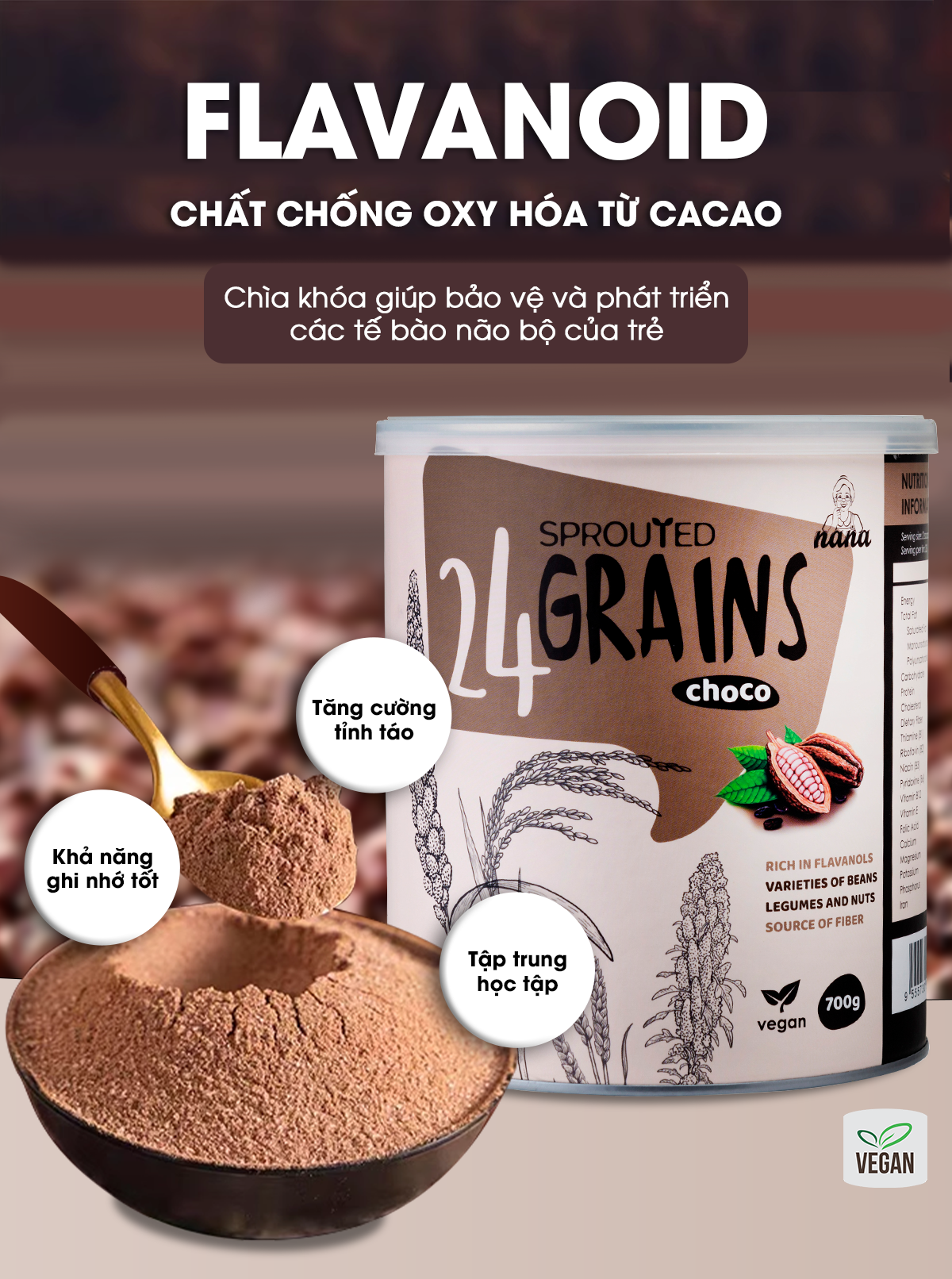 Sữa Gạo Lứt Hữu Cơ Nảy Mầm 24Grains Gói 30g Vị Socola Tự Nhiên Cho Trẻ Từ 3 Tuổi Sữa Hạt Dinh Dưỡng Phát Triển Não Bộ