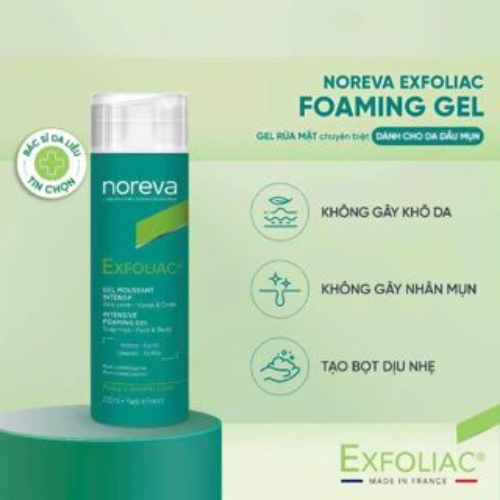 SỮA RỬA MẶT NOREVA EXFOLIAC INTENSIVE FOAMING GEL 200M ĐƯỢC CÁC BÁC SĨ DA LIỄU TIN CẬY