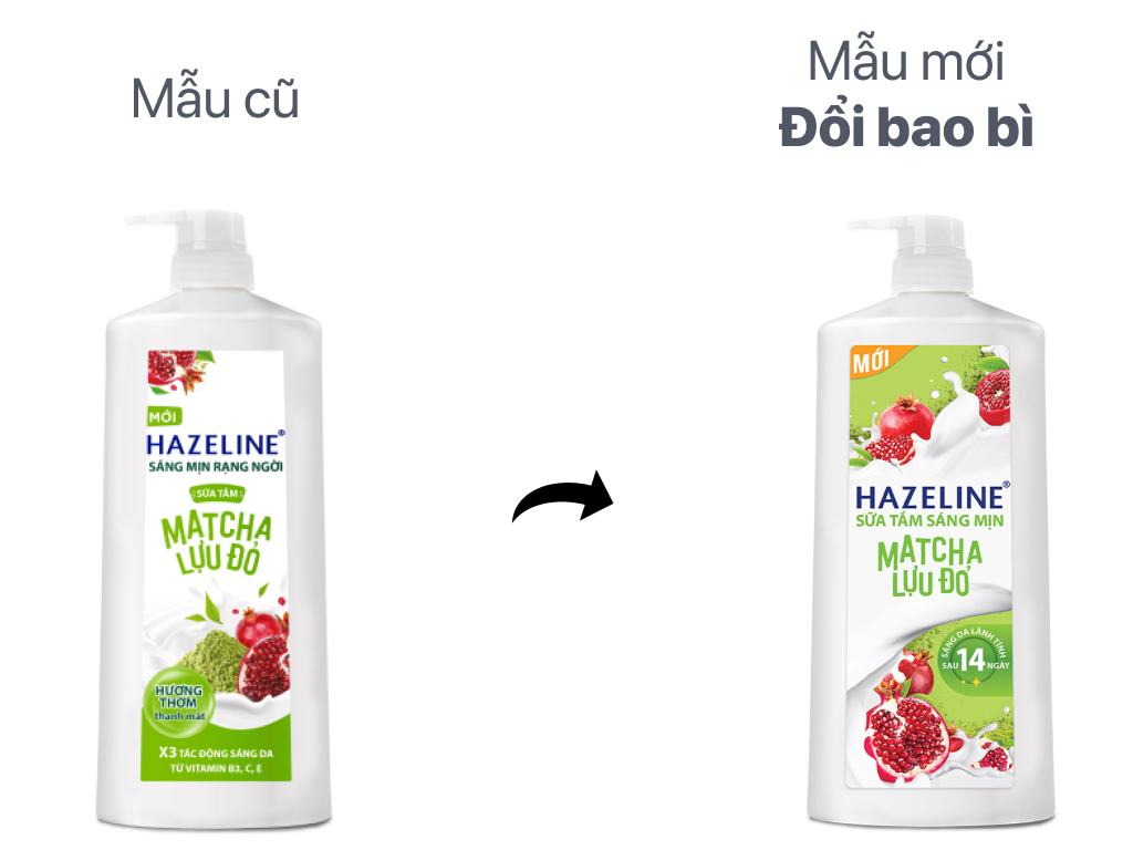 BAO BÌ THAY ĐỔI THEO TỪNG ĐỢT NHẬP HÀNG Sữa tắm Hazeline hoàn toàn mới, với bộ ba vitamin B3 – C – E và 100% chiết xuất thiên nhiên, cùng các siêu dưỡng chất