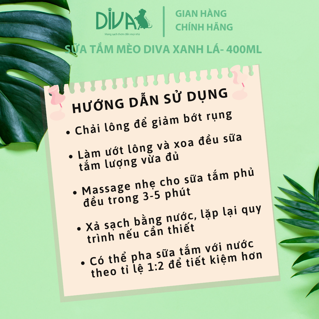 ✨SỮA TẮM MÈO DIVA XANH LÁ 400ML (DIVA FORMULA 6)