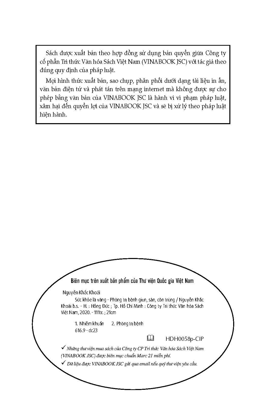 “Sức khỏe là vàng” gồm 6 cuốn, bộ sách quý đúng như tên gọi có sức khỏe là có tất cả. Cung cấp đầy đủ kiến thức phổ thông, dễ hiểu về những bệnh nguy hiểm thường gặp cũng như các phương pháp chẩn đoán, điều trị, phòng ngừa có hiệu quả cao. Cuốn sách “Phòng trị bệnh giun, sán, côn trùng” giới thiệu chi tiết về các bệnh sán cực kỳ nguy hiểm với sức khỏe con người như: sán máng, sán lá gan, sán lá phổi…cùng các triệu chứng, thuốc đặc trị và cách phòng ngừa. Ngoài ra sách còn cho chúng ta biết những loại côn trùng - vật chủ nguy hiểm như: giun chỉ, muỗi, gián… và các biện pháp phòng chống hiệu quả để bảo vệ sức khỏe.