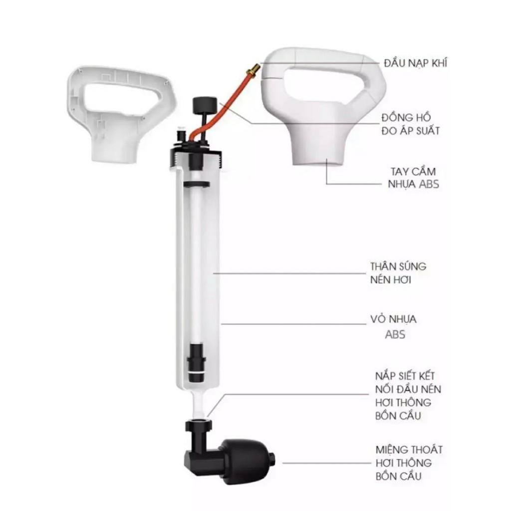 Dụng cụ thông bồn cầu toilet bị tắc nghẽn bằng ống hơi cực mạnh, có đồng hồ áp suất...
