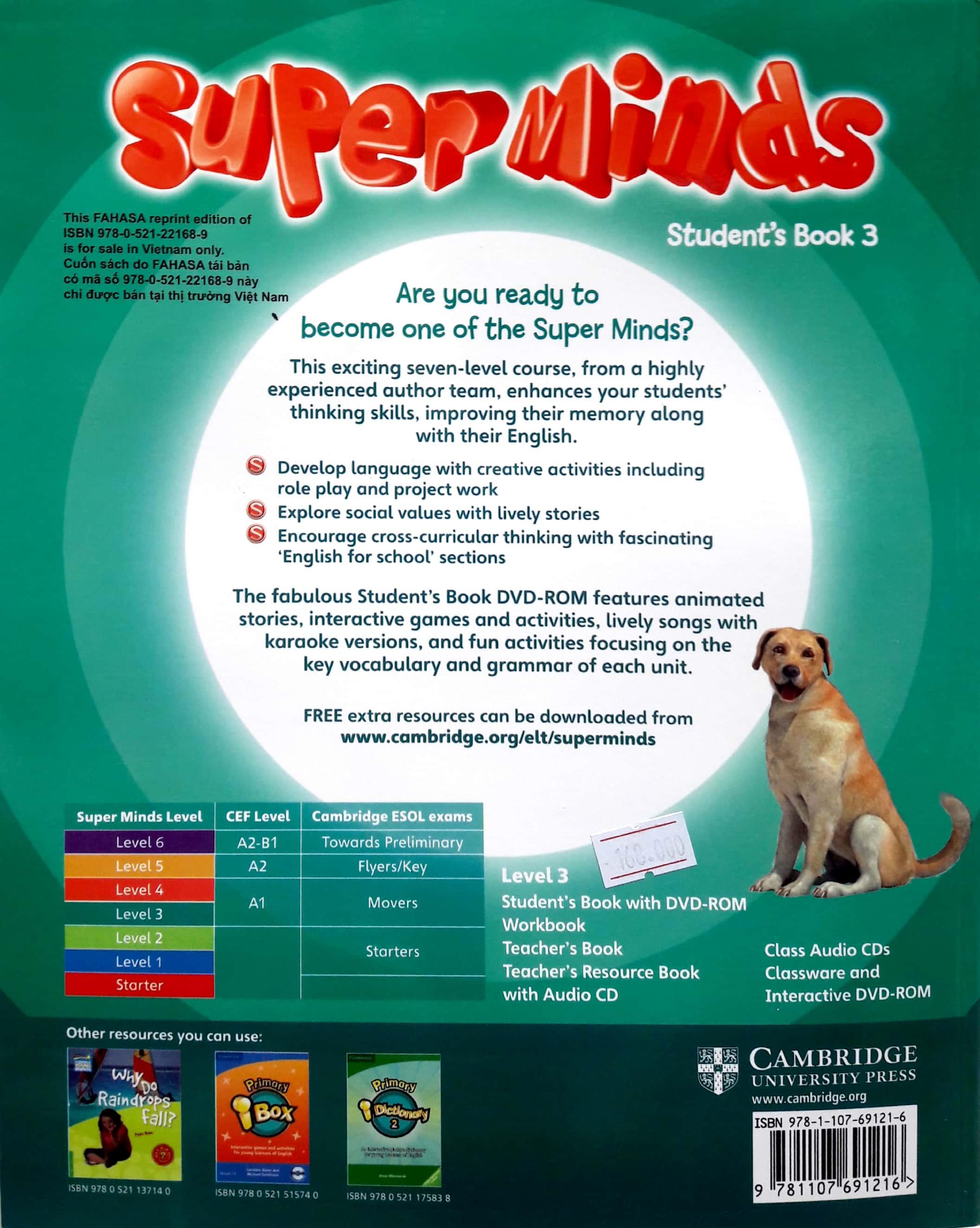 Mua tại TiktokSuper Minds is a seven-level course for young learners. Super Minds, from a highly experienced author team, enhances your students' thinking skills, improving their memory along with their language skills. This Level 3 Student's Book includes activities to develop language creatively, cross-curriculum thinking with fascinating 'English for school' sections and lively stories that explore social values. The fabulous DVD-ROM features animated stories, interactive games and activities including videokes, songs with karaoke versions, and fun activities focusing on each unit's vocabulary and grammar .