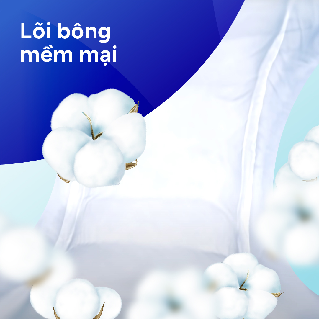 Lớp dẫn thấm thông minh (ADL) Giúp lan toả, phân tán đều chất lỏng, thấm hút siêu tốc và ngăn chất lỏng thấm ngược. Hạt GEL tác động kép thấm hút - kháng khuẩn