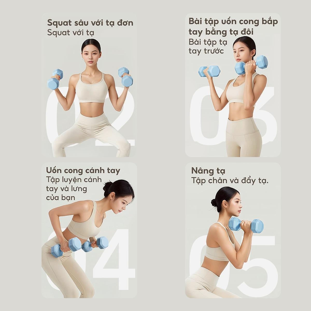 Bài tập tạ tay tại nhà cho nữ: vai vuông, lưng mảnh, tay thon gọn #xuhuong #tadon