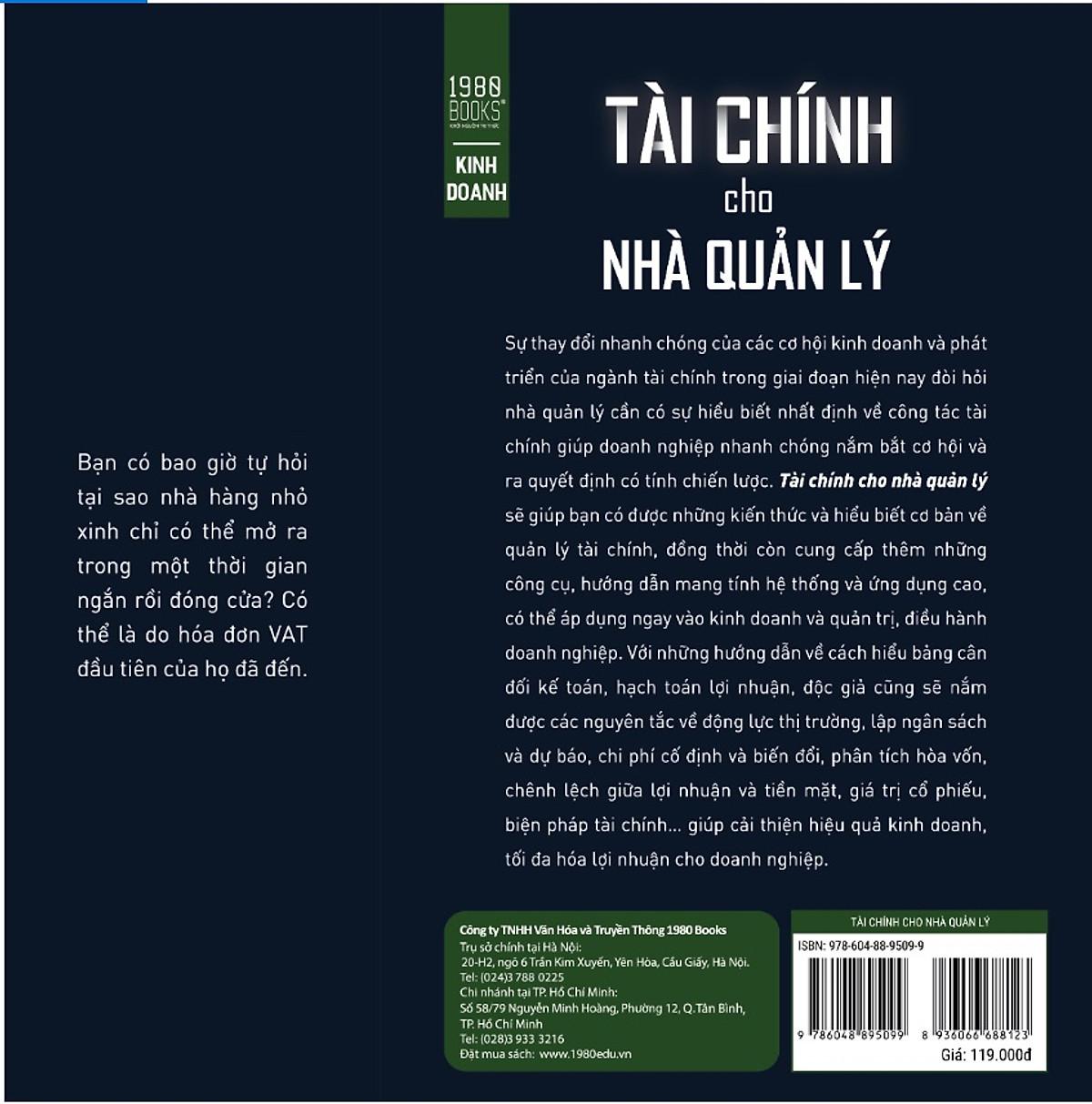 Sự thay đổi nhanh chóng của các cơ hội kinh doanh và phát triển của ngành tài chính trong giai đoạn hiện nay đòi hỏi nhà quản lý cần có sự hiểu biết nhất định về công tác tài chính giúp doanh nghiệp nhanh chóng nắm bắt cơ hội và ra quyết định có tính chiến lược. “Tài chính cho nhà quản lý” sẽ giúp bạn có được những kiến thức và hiểu biết cơ bản về quản lý tài chính, đồng thời còn cung cấp thêm những công cụ, hướng dẫn mang tính hệ thống và ứng dụng cao, có thể áp dụng ngay vào kinh doanh và quản trị, điều hành doanh nghiệp.