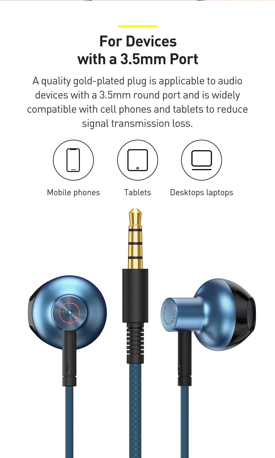 BASEUS Encok H17 3.5mm Sideal in-earphone Button Control Headphones Tai nghe nhẹ Tương thích với các thiết bị cổng 3.5mm hỗ trợ gọi thoại độ nét cao Cuộn dây di chuyển lớn 14mm: Màng PET