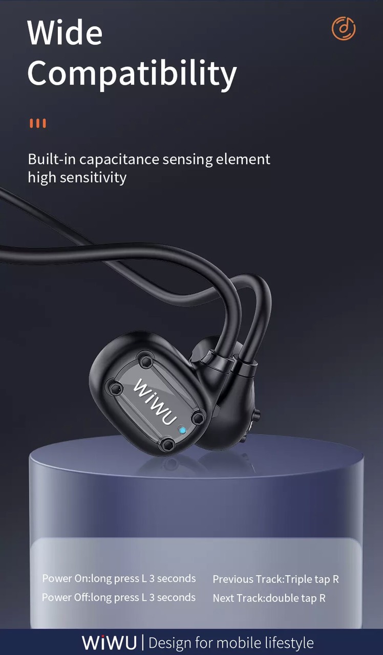 Tai nghe Cobra 2 Thương hiệu: Wiwu Thông tin sản phẩm - Thiết kế tai nghe nước thể thao có độ trễ thấp để chơi game - Tai nghe có chế độ chờ lâu với