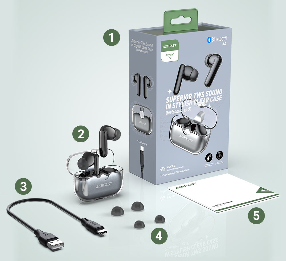 Tai nghe True Wireless ACEFAST - T4 chất lượng âm thanh vượt trội, độ trễ thấp. - Độ trễ cực thấp 65ms - Đồng bộ video và âm thanh nhanh hơn 3 lần - Cổng