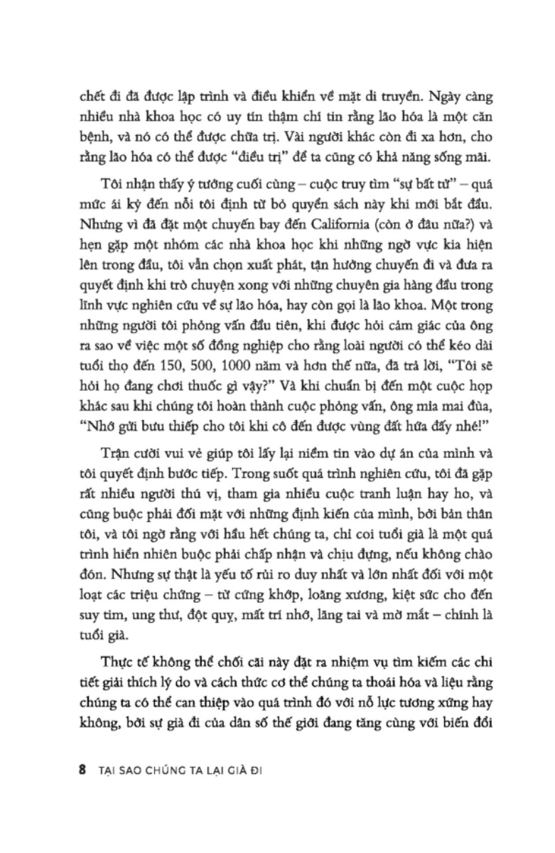 Mua tại TiktokTại Sao Chúng Ta Lại Già Đi? - Hiểu Đúng Về Lão Hóa Lão hóa là vấn đề mà tất cả chúng ta đều quan tâm, tuy nhiên chưa có sự đồng thuận và thống nhất giữa các nhà khoa học về nguyên nhân và cơ chế của quá trình này. Có người thì cho rằng đó là quá trình hao mòn cơ bản, người thì tin rằng đây là quy luật được lập trình sẵn để kiểm soát về mặt di truyền, thậm chí có người tin rằng lão hóa là bệnh, có thể được đề ị nhằm kéo dài tuổi thọ đến vô tận… Trong cuốn sách này, Sue Armstrong sẽ kể câu chuyện về quá trình tìm hiểu sự lão hóa; trình bày các nghiên cứu, phát kiến mới nhất của khoa học về quá trình này.