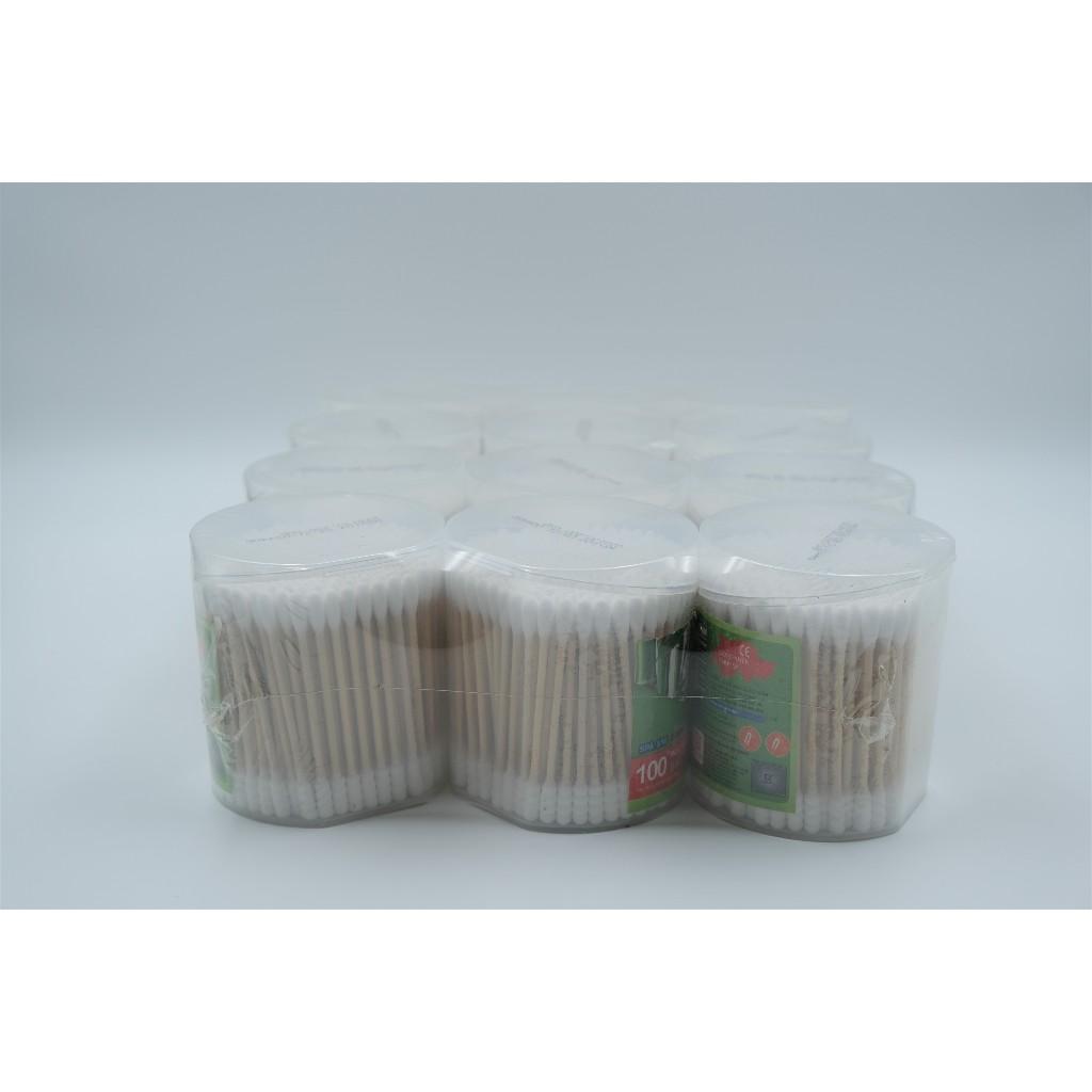 Tăm bông vệ sinh YUMY thân trúc – thiết kế hộp vát size L tiện lợi, dễ sử dụng và bảo quản. Đầu bông xoắn mềm mịn, không rụng sợi, an toàn cho da nhạy