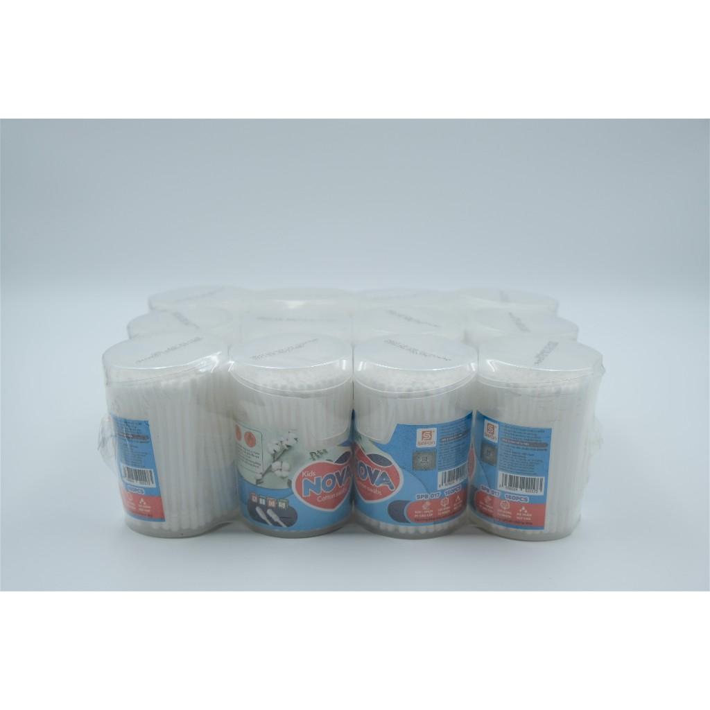 ✨Tăm Bông Vệ Sinh NOVA Hộp Vát Size M – Combo Lố 12 Hộp x 160 Que (TB01-017), Đầu Bông Mịn, Không Rụng Sợi