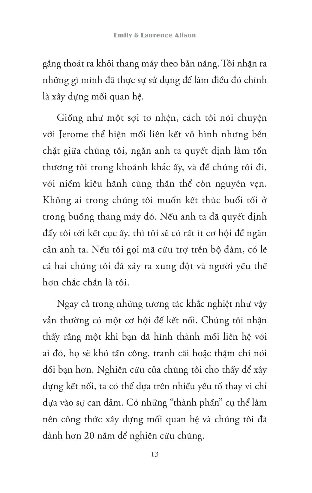 Tác giả Laurence và Emily Alison là những nhà lãnh đạo thế giới về Tâm lý học pháp y chuyên về những tương tác khó khăn nhất có thể tưởng tượng được: các cuộc thẩm vấn tội phạm. Họ tư vấn và đào tạo cho cảnh sát, lực lượng can thiệp an ninh, FBI và CIA về cách đối phó với những nghi phạm cực kỳ nguy hiểm rủi ro cao. Cuốn sách này là sản phẩm kết tinh của 30 năm làm việc, với hơn 2.000 giờ thẩm vấn khủng bố. Mô hình giao tiếp liên nhân đầy đột phá mà họ giới thiệu trong cuốn sách này có thể giúp độc giả xử lý bất kỳ cuộc chạm trán nào: từ đứa con ương bướng ở nhà hay những tên du côn ngoài phố.