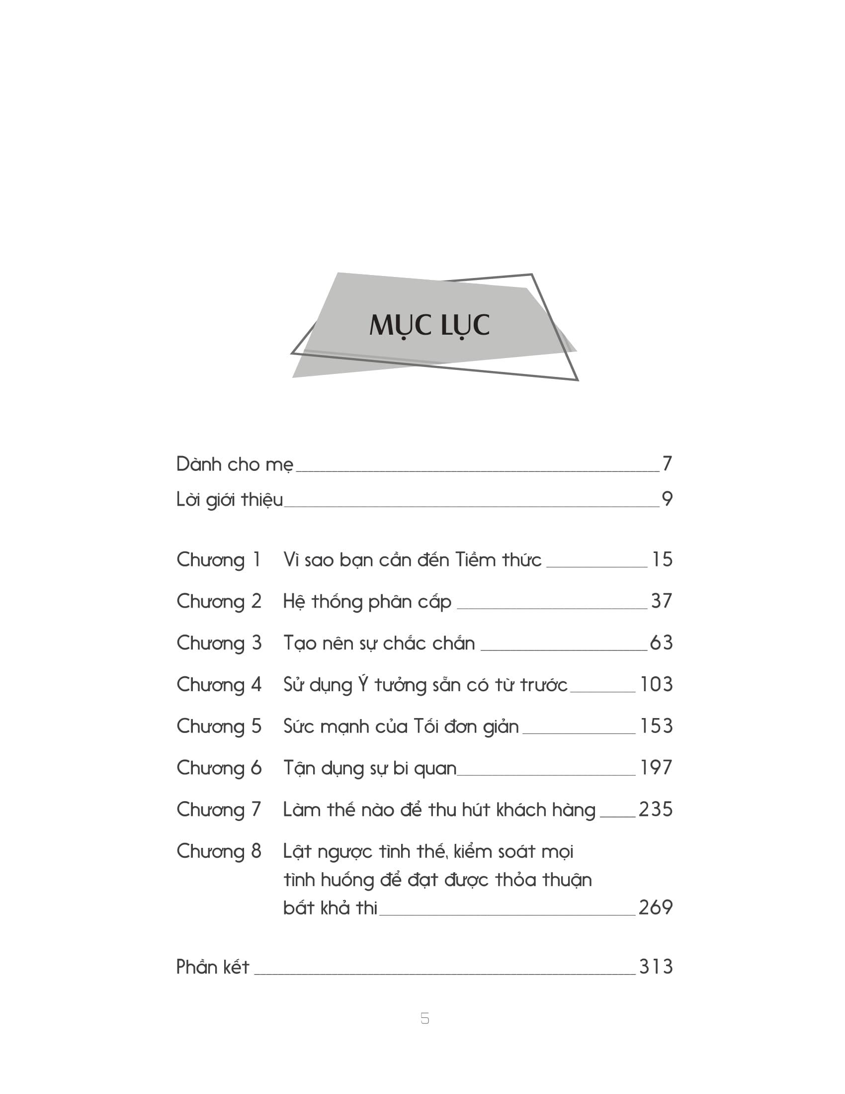 Trọng tâm của cuốn sách nằm ở phương pháp bán hàng hoàn toàn mới, Tiềm thức. Tức là gieo một ý tưởng vào tâm trí người khác, biến ý tưởng của bạn thành của người mua. Để thực hiện điều này, Klaff dẫn dắt bạn đọc qua từng bước cụ thể, từ cân bằng vị thế đến tạo sự chắc chắn, vận dụng sự bi quan để thu hút khách hàng và “chốt đơn” bằng Công thức người mua. Những câu chuyện “chào hàng” thực tế, trực quan, sinh động và dễ ứng dụng của Oren được kể lại trong cuốn sách là minh chứng cho sự hiệu quả của phương thức mới này. Áp dụng khôn khéo đáng kinh ngạc khoa học tâm lý, Oren đã thành công gieo rắc ý tưởng cho người nghe, dẫn dắt tư duy khách hàng đến quyết định “mua hàng” một cách hoàn toàn tự nguyện.