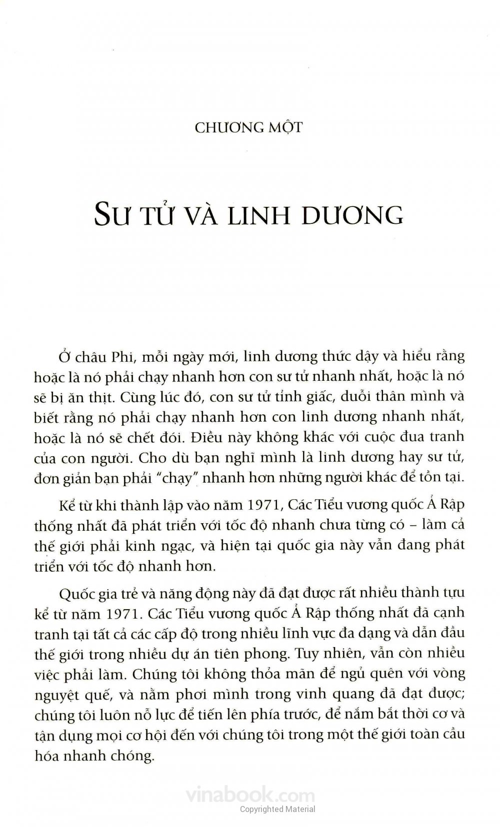 Cuốn sách Tầm Nhìn Thay Đổi Quốc Gia (được biên dịch từ My Vision) của tác giả, đồng thời cũng là Quốc vương Dubai - Mohammed bin Rashid Al Maktoum. Cuốn sách là một cái nhìn toàn diện về Dubai nói riêng và về Ả Rập nói chung, sẽ là một kinh nghiệm, một tham chiếu quý báu cho nhiều quốc gia, trong đó có Việt Nam.
