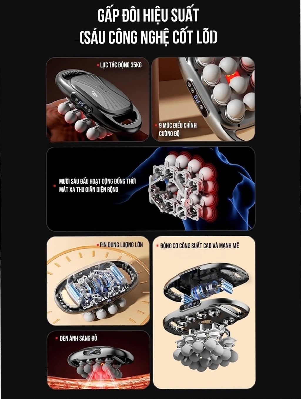 • Rung tần số cao , massage hiệu quả gấp 16 lần.