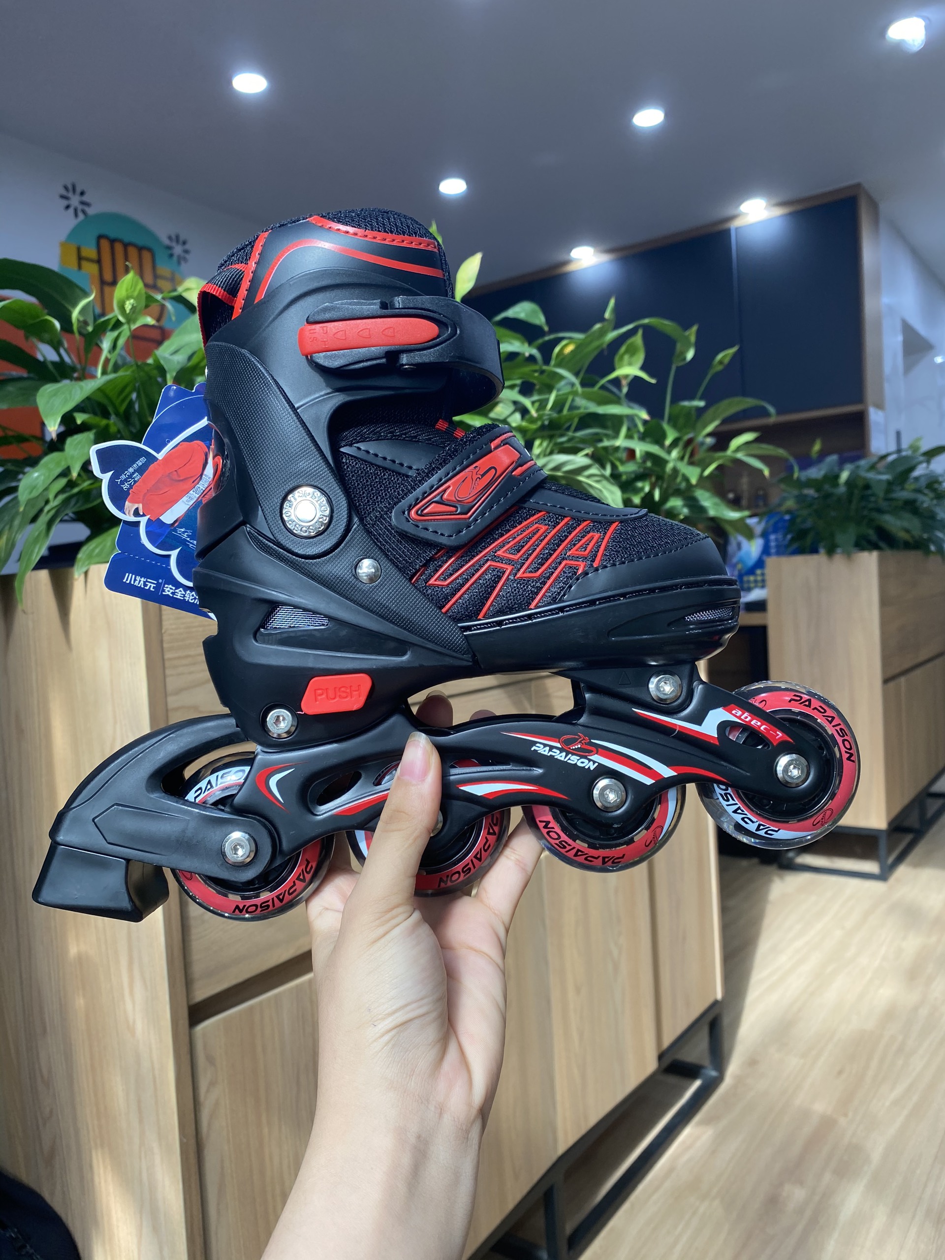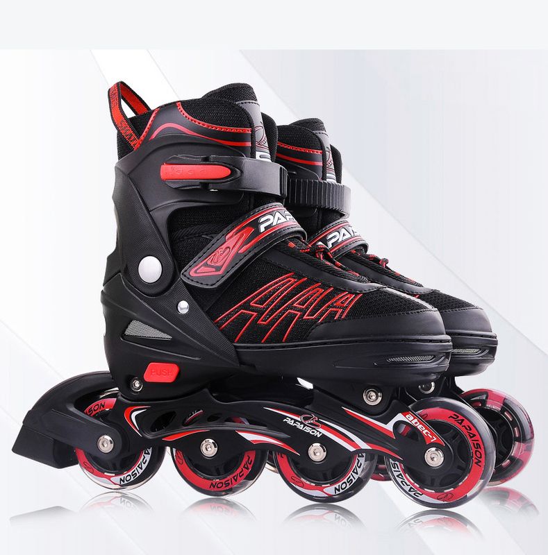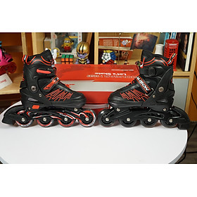 Giày Patin Trẻ Em Centosy -  A3, Tặng Kèm Bảo Hộ Tay Chân, Có Bánh Đèn Phát Sáng, Chỉnh Size   MÔ TẢ SẢN PHẨM: – Tên model:  A3. – Loại giày: Giày patin trẻ em – Màu sắc: Đỏ – đen; xanh – đen; đen. – Size giày: size S (30-33); M (34-37); L (38-41) – Tải trọng: Tối đa 45kg. LƯU Ý: SIZE GIÀY PATIN SẼ= SIZE GIÀY THỂ THAO THƯỜNG + 1 HOẶC 2 SIZE. VÍ DỤ SIZE GIÀY THỂ THAO LÀ 31 THÌ SIZE GIÀY PATIN SẼ LÀ 32,33 ( TƯƠNG ĐƯƠNG VỚI SIZE M)         THÔNG SỐ CHI TIẾT: – Thân giày: Được làm từ vải dày, êm ái và thoáng khí dưới dạng lưới có khung nhựa bao bọc chắc chắn cố định form bảo vệ cho mắt cá chân của trẻ, tránh gây ảnh hưởng xấu đến sự phát triển gây biến dạng dáng đi khi sử dụng trong thời gian dài. Giày có thể chỉnh size được nên bé dùng được 3-4 năm (tùy mức độ phát triển của bé). Nút Push chỉnh size được thiết kế ở mặt dưới thân giày, dễ dàng sử dụng khi cần thiết. – Càng (frame): Làm từ hợp kim nhôm giúp giày trở nên chắc chắn hơn. – Bánh xe: Làm bằng cao su pha cao cấp chất lượng giúp bé trượt bon và mượt hơn dù bất kì ở địa hình nào. Đặc biệt khi trượt, bánh xe còn phát sáng thu hút mọi ánh nhìn, đảm bảo các bé đều thích mê với những chiếc bánh đèn này. – Vòng bi: ABEC 7 tạo độ mượt mà khi trượt. – Khóa giày: Hệ thống khóa cổ giày (khóa cài), khóa thân giày (khóa dán) dễ sử dụng cho bé, kể cả bé nhỏ . – Nút tăng size: vì ở độ tuổi phát triển của các bé kích thước bàn chân chưa ổn định, vậy nên giày có nút PUSH nằm ở phía dưới bên ngoài đế giày giúp tăng điều chỉnh thêm size, tạo điều kiện cho bé sử dụng được sản phẩm ở thời gian lâu dài HƯỚNG DẪN SỬ DỤNG: – Trong quá trình sử dụng: các ốc vít có thể bị lỏng cần thường xuyên kiểm tra để đảm bảo ốc vít tại các bộ phận luôn chặt chẽ, đặc biệt là bánh xe. Đặc biệt, sử dụng bánh xe có thể bị hỏng, mòn cần thay thế để đảm bảo an toàn cho bé – Hạn chế đi vào các địa hình xấu, nhiều vật sắc nhọn hay đường dễ trơn trượt.