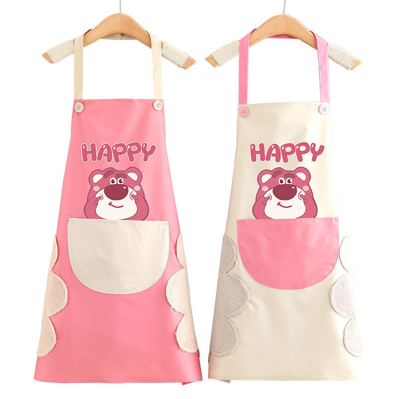 Tạp dề nấu ăn chống thấm nước, tạp dề pha chế có túi, tạp dề hoạ tiết có khăn lau bên hông