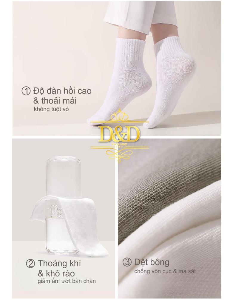 Tất vớ nam nữ cổ trung trắng đen chất cotton 3B màu cơ bản - Thiết kế chỉnh chu từng chi tiết, mẫu mã thời thượng trẻ trung - Tất trơn mỏng thoáng, phần chun